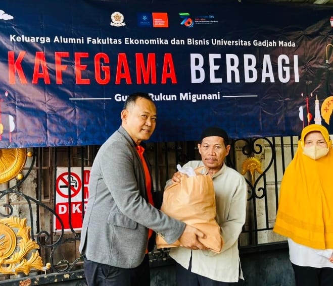 Ketua Alumni Fakultas Ekonomi Bisnis Universitas Gajah Mada DR. H.Fauzi Serahkan sembako.