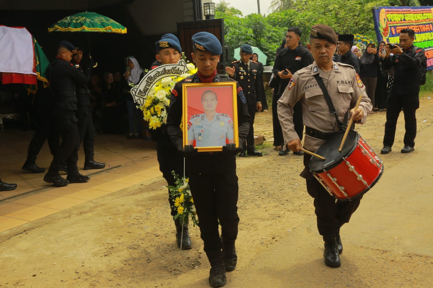 Upacara pemakaman militer bagi Danyon A Pelopor tersebut dipimpin langsung oleh Dansat Brimob dan dilaksanakan pada Minggu (25/1/ 2026), di pemakaman umum di Jalan Dahlia II Natar, Kecamatan Natar, Kabupaten Lampung Selatan.